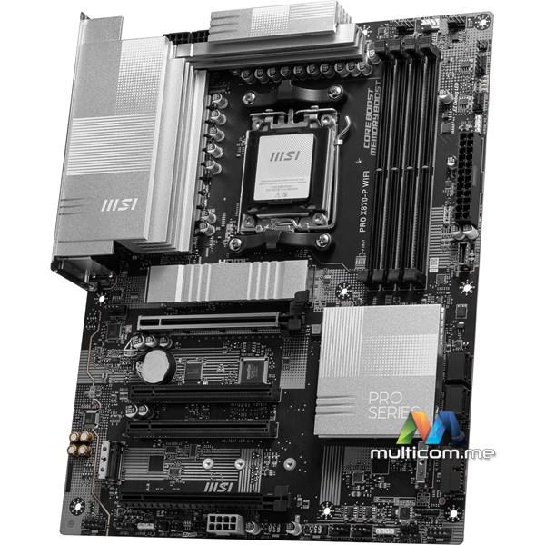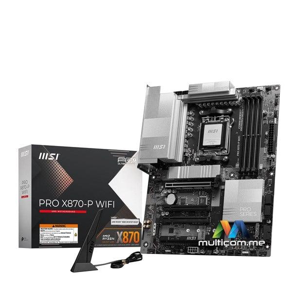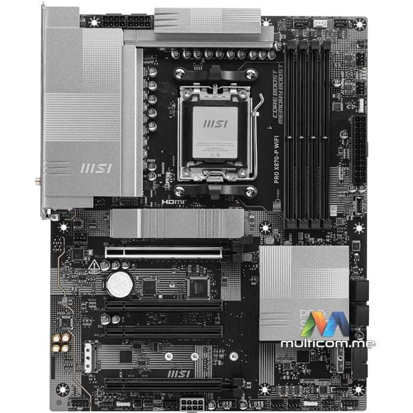 MSI PRO X870-P WIFI matična ploča (911-7E47-001) │ Matična ploča: AMD X870 (ATX) │ Podnožje: AM5 │ RAM: 4x DIMM, DDR5, do 256GB (8200MHz) │ PCIe slotovi: 4x PCIe x16 │ Skladištenje: 3x M.2, 4x SATA III │ USB: 4x USB 2.0, 2x USB 3.2 Gen 1, 2x USB 3.2 Gen 2 (1x Type-C) │ Mreža: 5Gb Ethernet, Wi-Fi 7, Bluetooth 5.4 │ Audio: 7.1 kanali