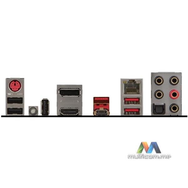 | Priključci na zadnjem panelu | DisplayPort priključci: 1x DisplayPort HDMI priključci: 1x HDMI PS/2: 1 (tastatura ili miš) Ukupno USB priključaka: 7 USB 3.1 priključci: 2 (Tip A), 1 (Tip C), 1 (Tip A) Gen2 USB 2.0 priključci: 3 RJ-45 (LAN): 1 Audio: 5x 3.5mm, 1x S/PDIF optički | |