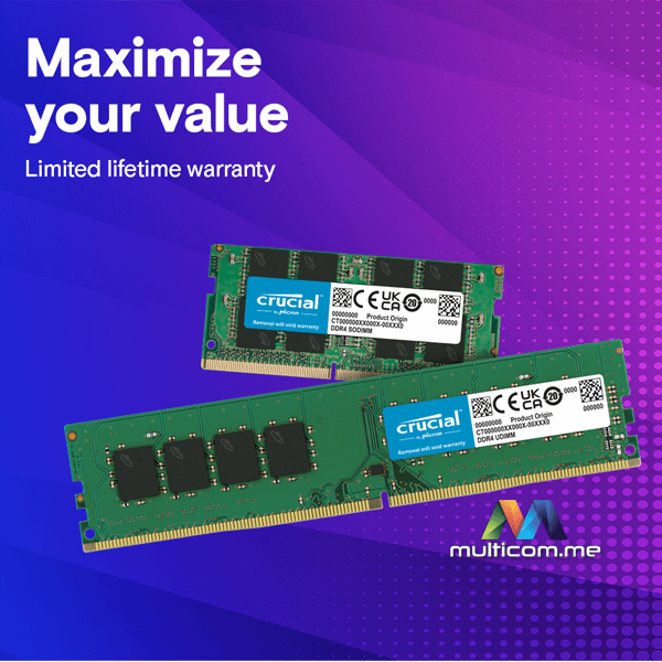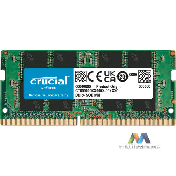 Crucial CT16G4SFRA32A 16GB DDR4-3200 RAM memorija │ Tehnologija: DDR4 │ Tip: SODIMM │ Kapacitet: 16GB │ Brzina: 3200 MHz │ Napon: 1.2V │ Unbuffered │ CAS Latencija: 22 │ Tajming: 22-22-22