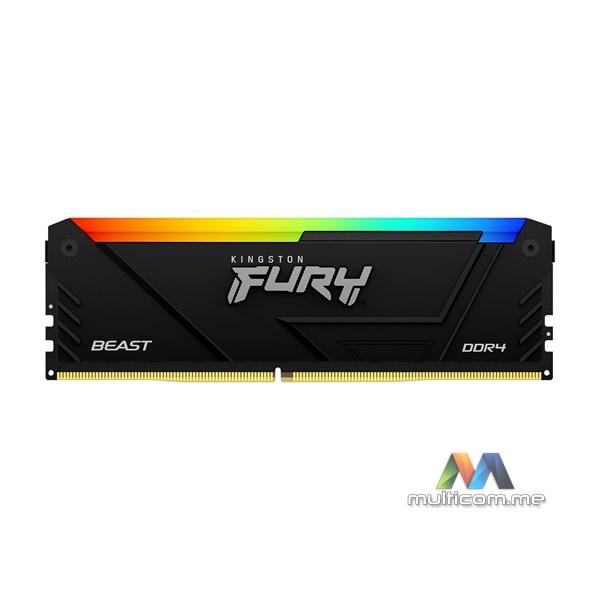 Kingston FURY Beast DDR4 RGB memorija Kingston FURY™ Beast DDR4 RGB memorija unapređuje stil i performanse svakog sistema. Sa impresivnim RGB osvetljenjem koje dopunjuje elegantni crni rasipač toplote i impresivnim brzinama do 3733MT/s. Izaberite između Intel® XMP sertifikovanih i XMP-Ready profila, spremnih za AMD Ryzen, ili se odlučite za Plug N Play automatsko overclocking na 2666MT/s kako biste dobili pojačanje koje vam je potrebno za rad i zabavu.
