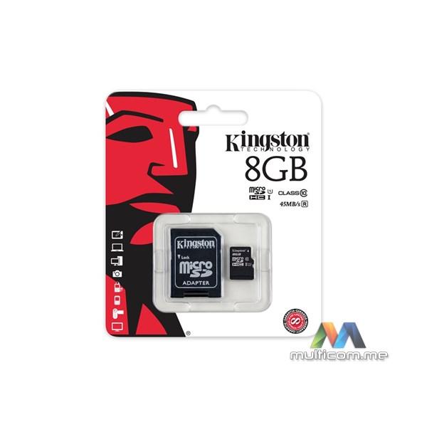 Kingston Micro SDHC 8GB Class 10 UHS-I + SD Adapter, 45MB / s read and 10MB / s write speed