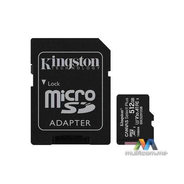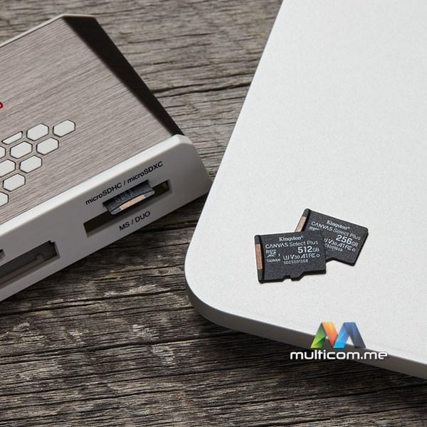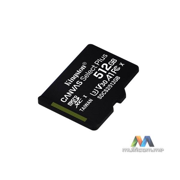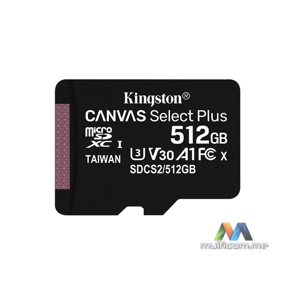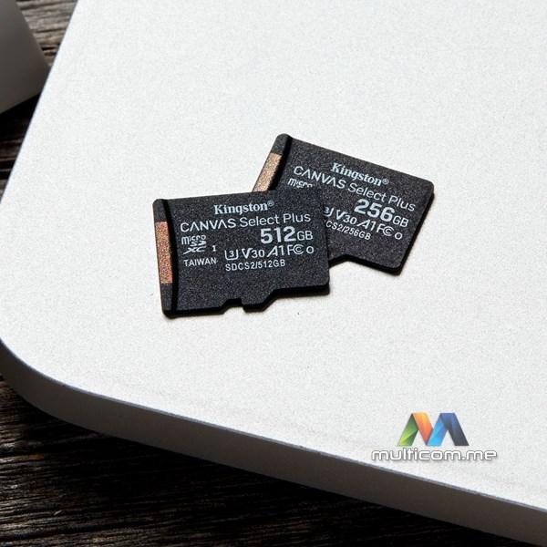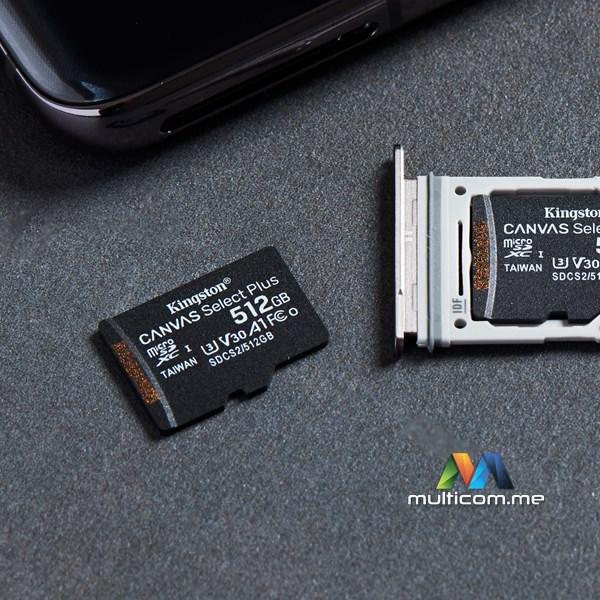Kingston Canvas Select Plus 512GB microSD kartica (SDCS2/512GB) │ Kapacitet: 512 GB │ Tip kartice: SDXC │ Brzina čitanja: 100 MB/s │ Brzina pisanja: 85 MB/s │ UHS-I Class 3 (U3) │ Video brzina: V30 │ Klasa 10