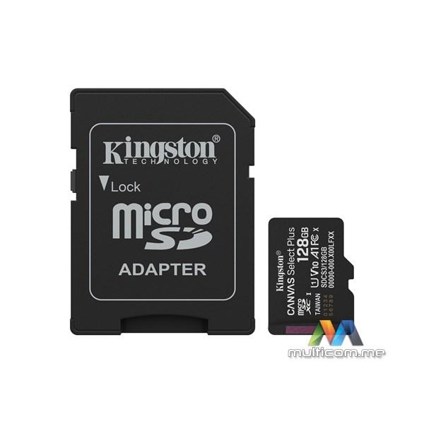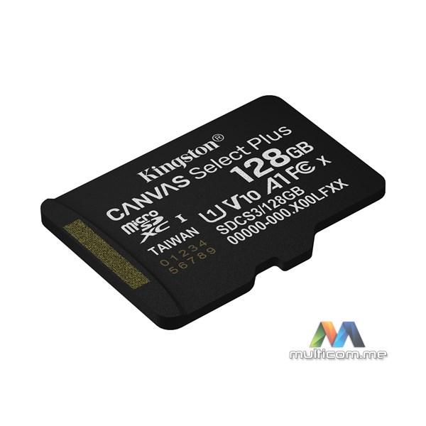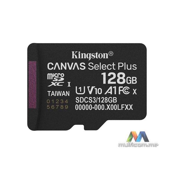 Kingston Canvas Select Plus Gen3 128GB microSD kartica (SDCS3/128GB) │ Kapacitet: 128 GB │ Tip: MicroSDXC │ Brzina čitanja: 150 MB/s │ UHS-I │ Klasa brzine: U1 │ Video brzina: V10 │ Klasa performansi aplikacije: A1