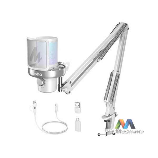 Maono DM40 S Pro White bežični gaming mikrofon │ AI tehnologija promjene glasa │ Trajanje baterije do 75h │ Napredna redukcija šuma │ RGB osvjetljenje │ Frekvencija uzorkovanja: 48 kHz / 24 bita