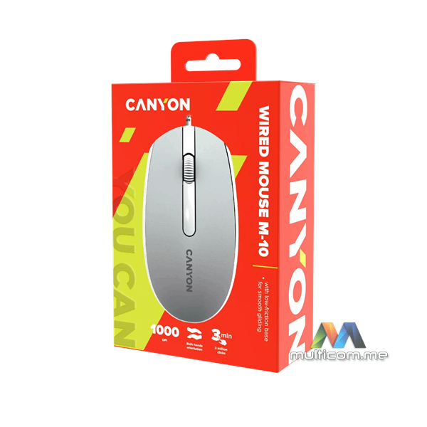 CANYON M-10 Dark Grey žični miš │ 1000 DPI │ 3 tastera │ Ergonomski dizajn │ Kabl 1,5m