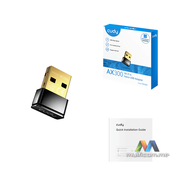 CUDY WU300 AX300 Wi-Fi 6 Nano USB adapter │ Kompaktan dizajn │ Brzina do 286 Mbps │ Soft AP režim za Wi-Fi hotspot │ USB 2.0 priključak