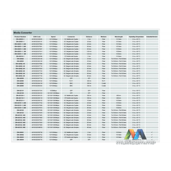 Media konverteri od DIGITUS® su idealno rješenje za migraciju bakarnih i optičkih mrežnih signala. Od sada, možete pristupiti optičkoj tehnologiji i prenositi mrežne signale preko nekoliko kilometara bez potrebe za obnavljanjem cijele mrežne infrastrukture. Velika raznovrsnost proizvoda ispunjava vaše individualne potrebe. Intuitivno rukovanje garantuje brzu i laku instalaciju. Godine iskustva i širok spektar proizvoda čine DIGITUS® pouzdanim partnerom za vašu mrežu.