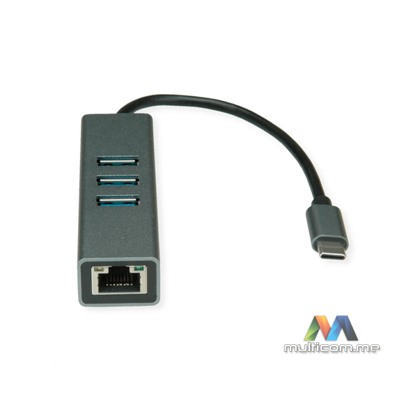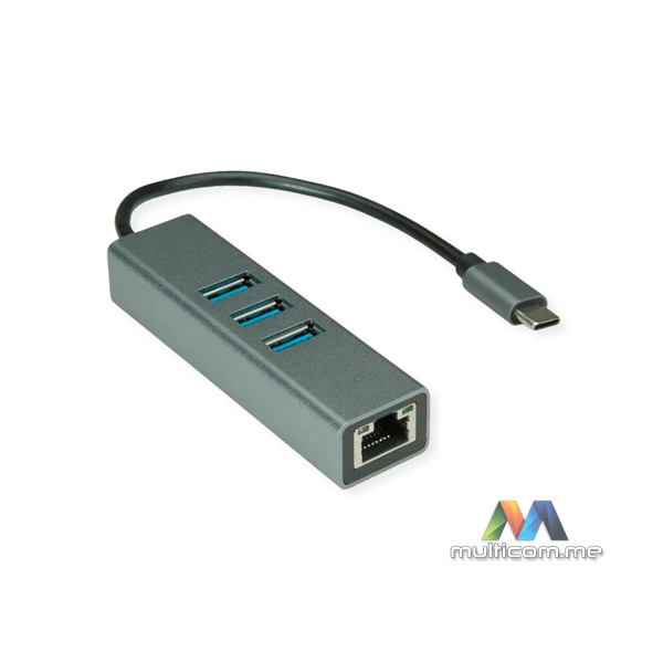 SECOMP Roline USB Type C to Gigabit Ethernet Converter + Hub 3x │ Podržava USB 3.0 / USB 3.2 Gen 1 │ Podržava Gigabit Ethernet │ USB čvorište sa 3x USB 3.0 / USB 3.2 Gen 1 portovima