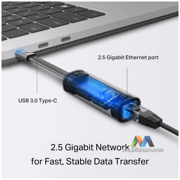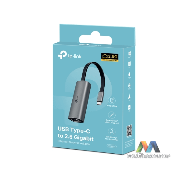 TP-LINK UE302C USB Type-C to 2.5 Gigabit Ethernet Network Adapter │ 2.5 Gigabit Ethernet port │ Plug and Play funkcija │ Izdržljiv aluminijumski dizajn