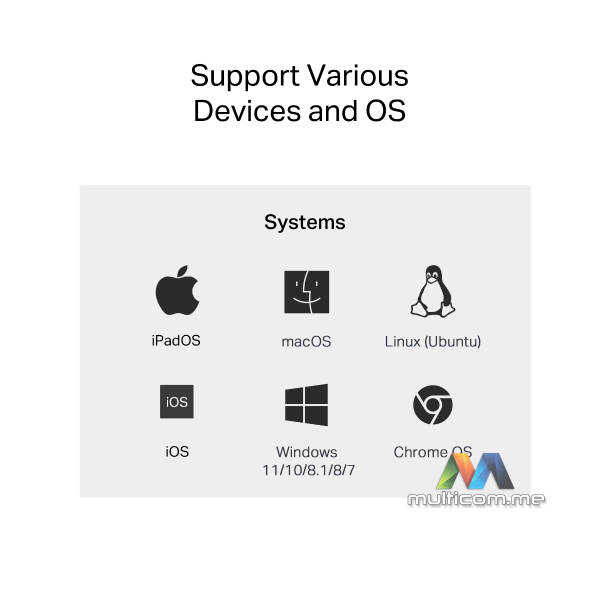 Univerzalna Kompatibilnost: Podržava Windows 11/10/8.1/8/7, MAC OS, iPadOS, Chrome OS, Linux OS, i iOS‡
