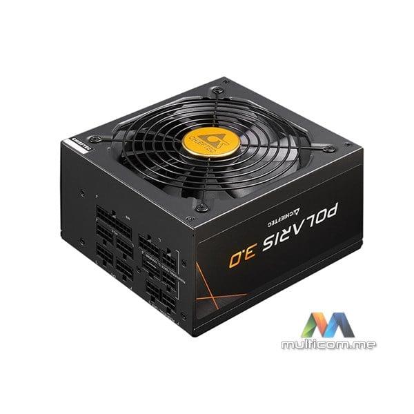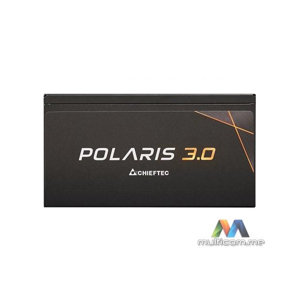 Serija CHIEFTEC Polaris 3.0 je dizajnirana prema Intelovom ATX 3.1 standardu i podržava PCIe GEN 5 sa 80 PLUS® GOLD sertifikovanom efikasnošću, obećavajući izvanredne performanse. Polaris 3.0 karakteriše savremeni tehnički dizajn uključujući LLC polu-bridge konverter sa DC-DC tehnologijom, kao i japanske glavne kondenzatore kako bi se postigla niska talasnost i precizna regulacija napona. Polaris 3.0 135mm FDB tihi ventilator optimizuje ravnotežu između hlađenja i buke uz izvanrednu izdržljivost. Potpuno modularno upravljanje kablovima osigurava čistu i praktičnu izradu unutar bilo kojeg sistema.