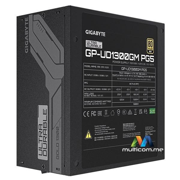 GIGABYTE UD1300GM PG5 napajanje │ 1300W snaga │ 80 PLUS Gold │ Podržava PCIe Gen 5.0 grafičke kartice │ Intel ATX 3.0 standard │ Potpuno modularan dizajn