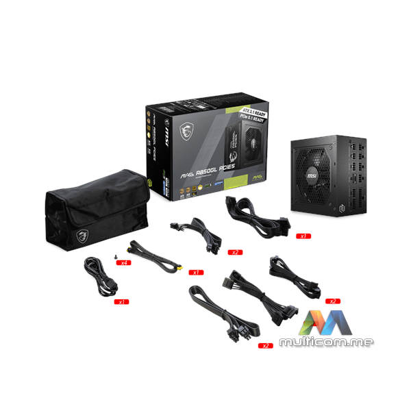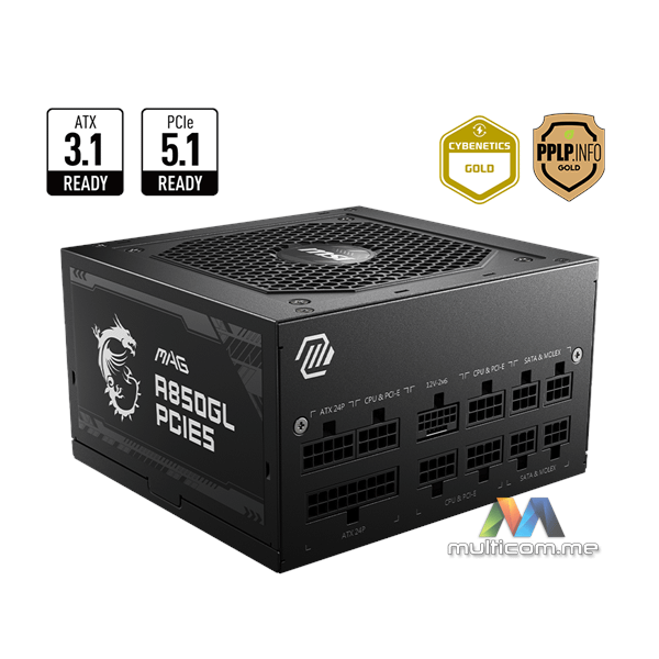MSI MAG A850GL PCIE5 napajanje │ ATX 3.1 spreman │ Native PCIe 5.1 kabl │ Potpuno modularni dizajn │ 80 Plus Gold │ Aktivni PFC dizajn │ 120mm ventilator │ DC-DC i Full Bridge topologija