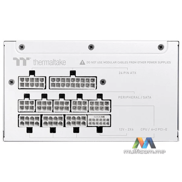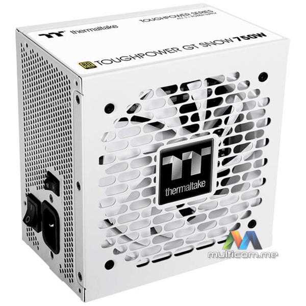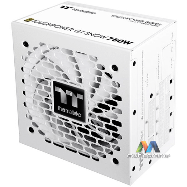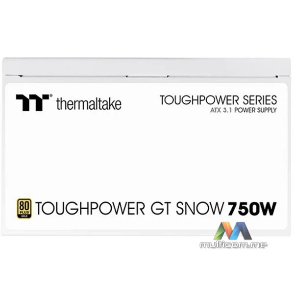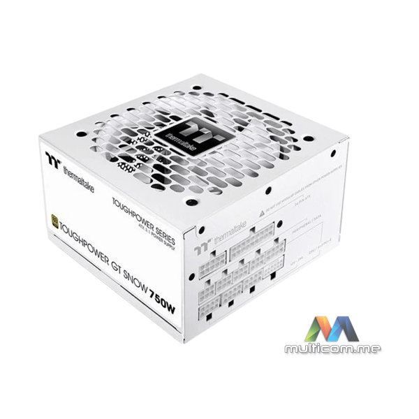 Thermaltake Toughpower GT Snow 750W napajanje (PS-TPT-0750FNFAGE-W) │ Snaga: 750 W │ Sertifikacija: 80 PLUS Gold │ Standard: ATX12V 3.1 │ Konektori: 1x 24-pin, 2x 4+4-pin 12V, 4x 6+2-pin PCIe, 6x SATA │ Hlađenje: 120 mm ventilator, polu-pasivno │ Zaštite: OCP, OVP, UVP, OPP, SCP, OTP │ Dimenzije: 150 x 86 x 140 mm │ Modularni kablovi