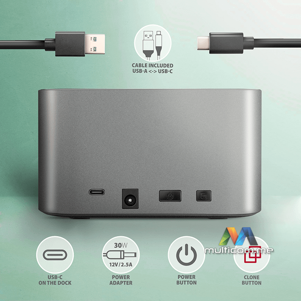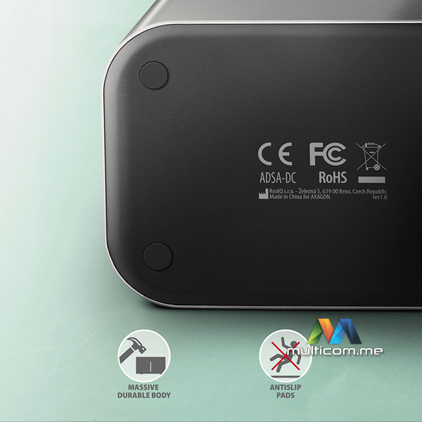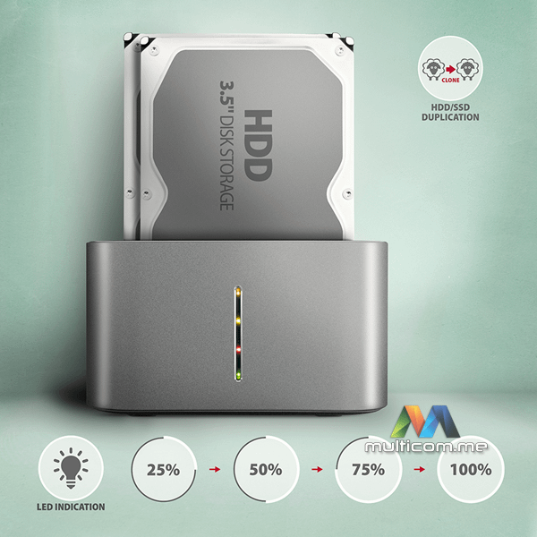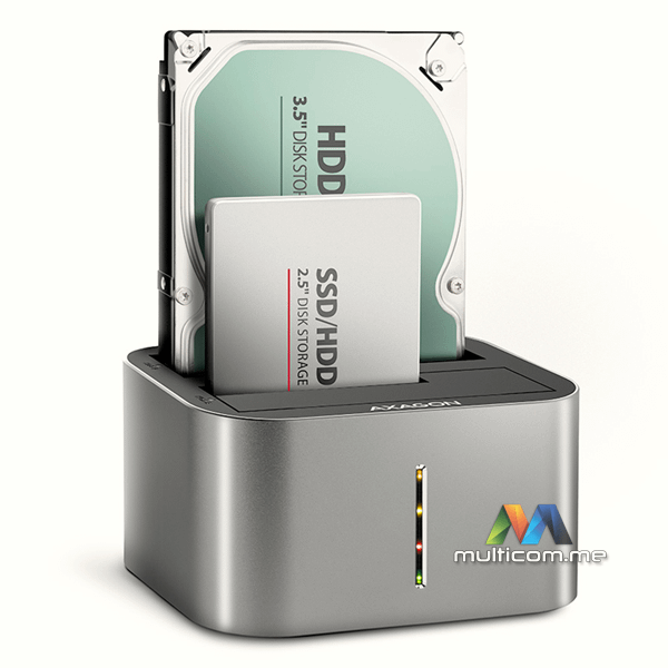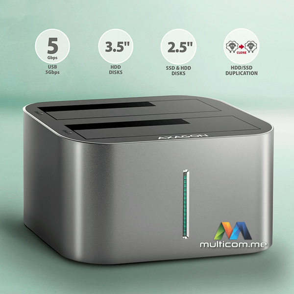 Axagon ADSA-DC SuperSpeed USB DUAL 2.5"/3.5" HDD/SSD DUAL dock │ USB-C konektor │ Lako kloniranje diskova bez računara │ SATA 6G sa UASP podrškom │ TRIM funkcija │ S.M.A.R.T. praćenje │ Aluminijumsko kućište
