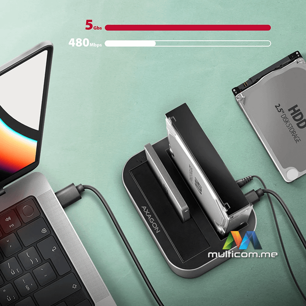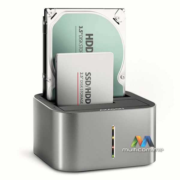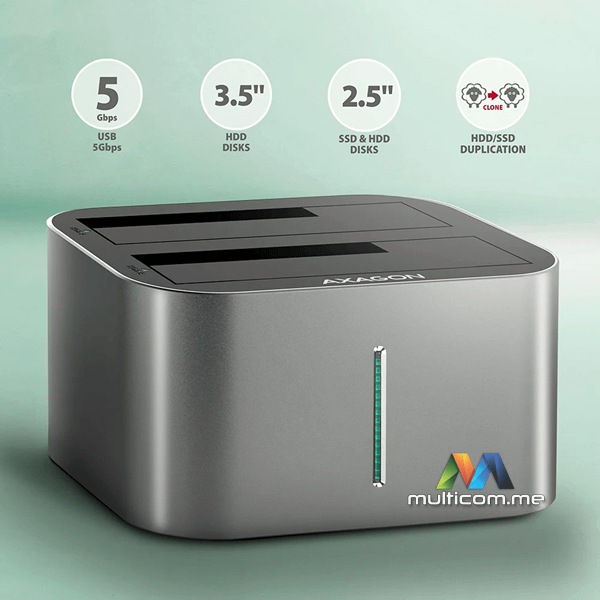 Axagon ADSA-DC HDD/SDD dock │ 2,5-inch / 3,5-inch SATA III priključci │ Interfejs USB 3.2 Gen 1 │ Podržava 2 diska