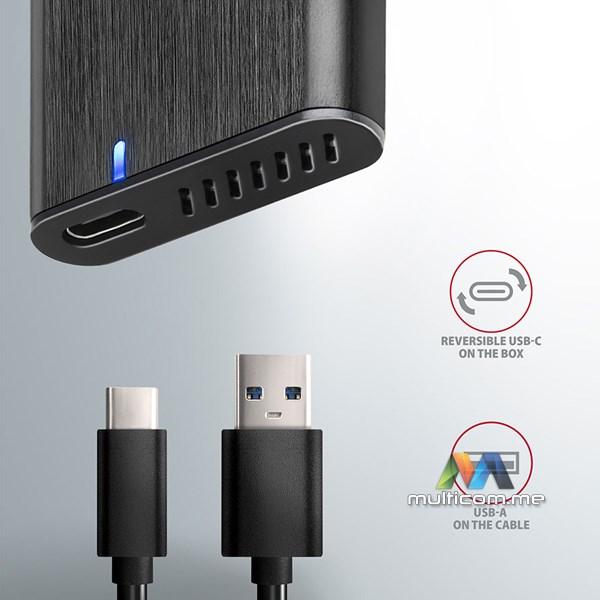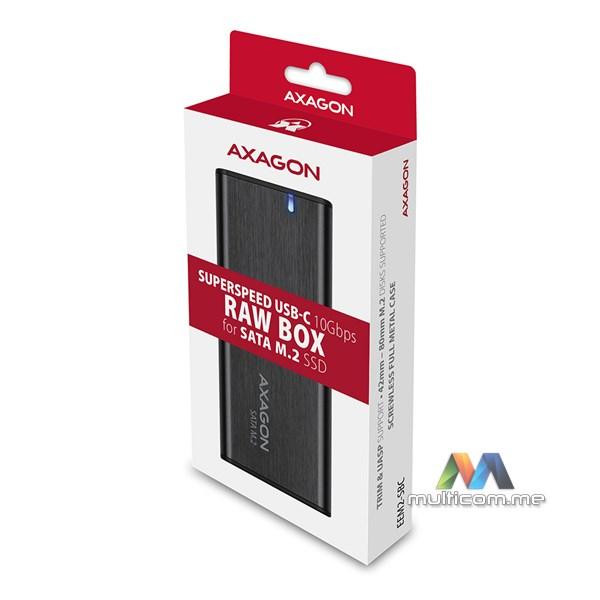 Aluminijumsko eksterno kućište AXAGON EEM2-SBC RAW sa USB 3.2 Gen 2 interfejsom namijenjeno je za SATA M.2 SSD diskove. Dvostrani USB-C konektor na kućištu, zajedno sa priloženim USB-C -> USB-A kablom, omogućava pouzdano povezivanje sa računarom.