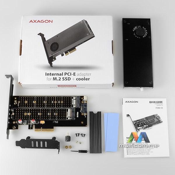 Axagon PCEM2-DC PCIe NVMe + SATA M.2 adapter │ PCI-Express x4 adapter sa hladnjakom za povezivanje do dva M.2 diska na računar │ 1× NVMe M-key + 1× SATA B-key