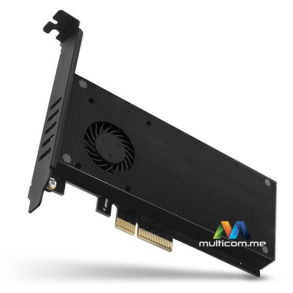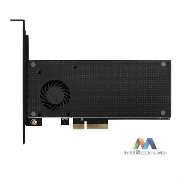 Visokokvalitetni dizajn kartice, uključujući otvore presvučene bakrom, pomaže u boljem odvođenju toplote generisane tokom rada M.2 SSD-ova. Metalni poklopac sa ventilatorom i priloženi pasivni hladnjak, uključujući termalne jastučiće, pomažu u hlađenju M.2 SSD-ova. To rezultira idealnom kombinacijom pasivnog i aktivnog hlađenja M.2 SSD-ova i uklanjanja toplote. Zahvaljujući hlađenju i smanjenju temperature do 35°C, moguće je koristiti maksimalnu snagu postavljenih SSD-ova.