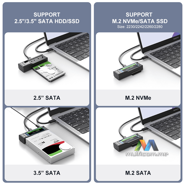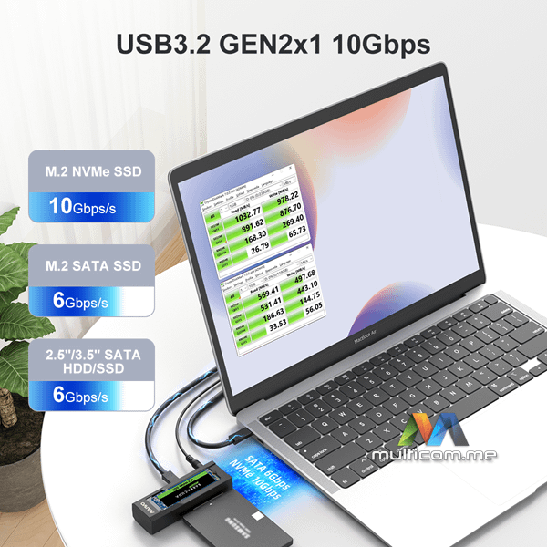 MAIWO K10635P2 Adapter USB Tip-C 10Gbps na NVMe M2 i SATA disk za 2.5" i 3.5" HDD │ Materijal: ABS │ Boja: Crna │ Ulaz: SATA/M.2 NVMe │ Izlaz: Type C │ Brzina prenosa: Do 10Gbps │ Kompatibilni SSD: M.2 NVMe SSD i SATA HDD/SSD │ Karakteristike: Pretvara SATA i M.2 NVMe u USB C │ Podržani sistemi: Windows, Linux, MAC OS