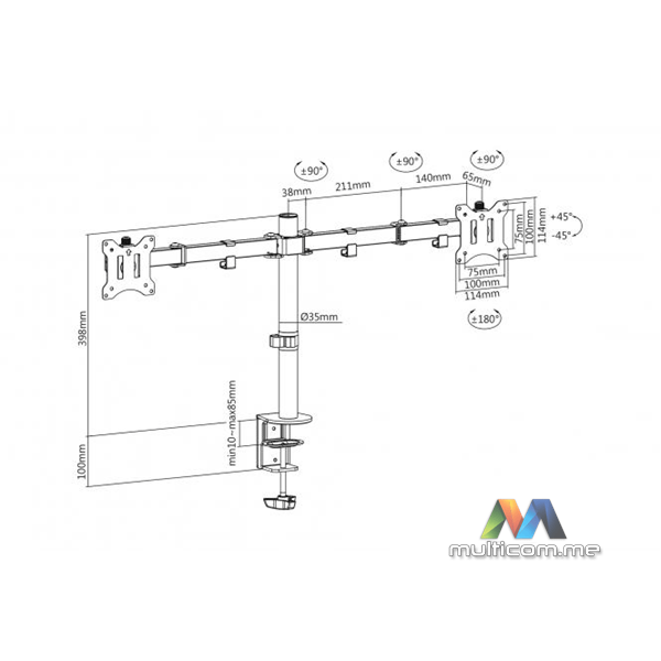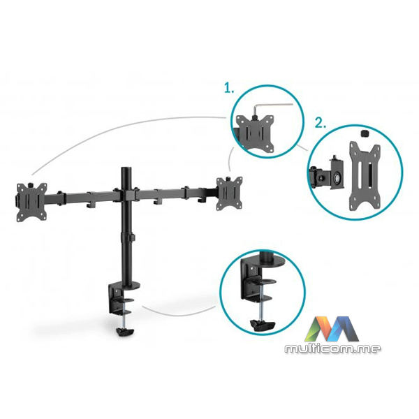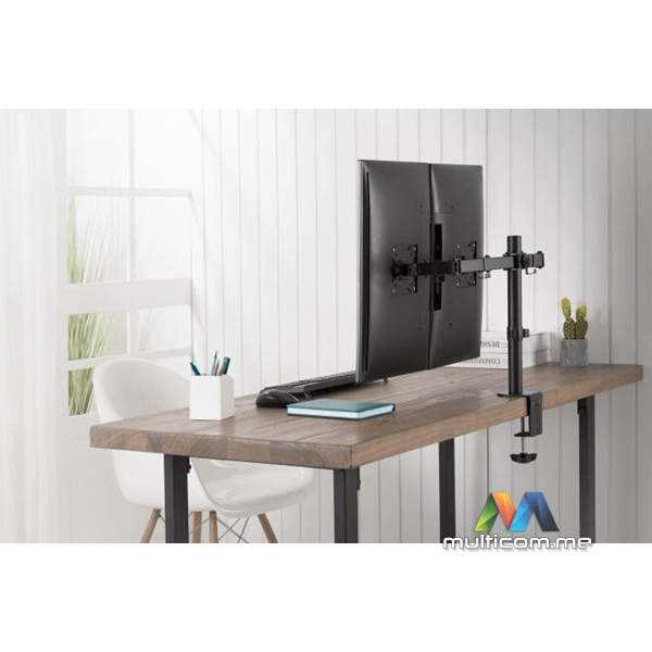 Digitus DA-90400 držač za monitor │ Dual monitor nosač │ 15–32" │ max. 2x 8 kg │ VESA 75x75 / 100x100 │ Podešavanje visine │ Rotacija, nagib, zakretanje │ Brzo montiranje (quick release) │ Ugrađeno upravljanje kablovima