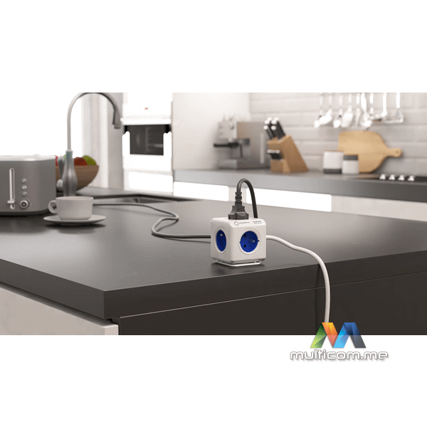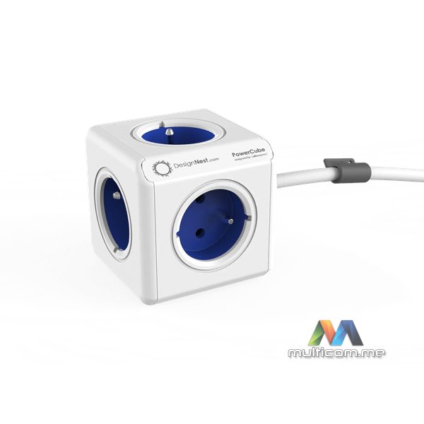 Allocacoc PowerCube Extended 1,5 m - blue │ 5 utičnica │ Montažni sistem │ Modularni dizajn │ Uklonjive trake │ Organizator kablova