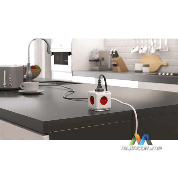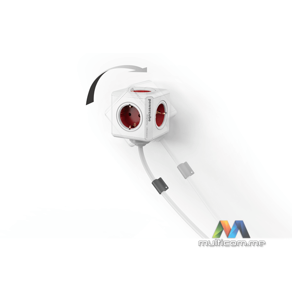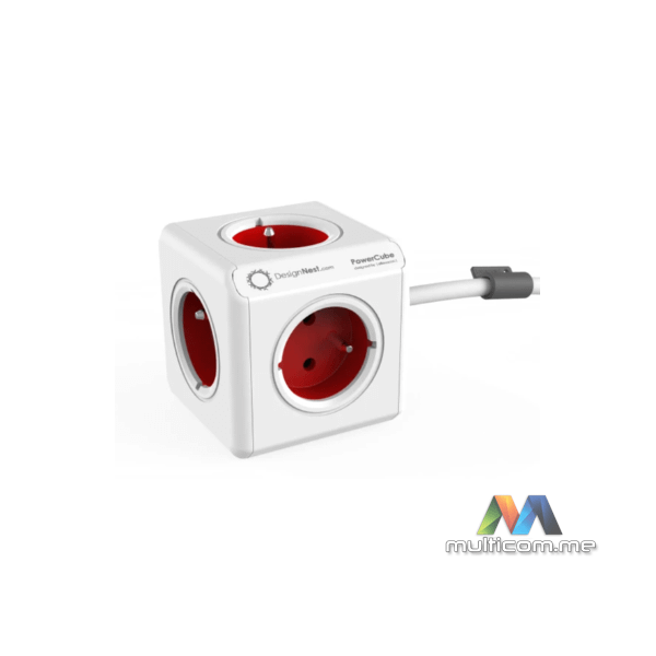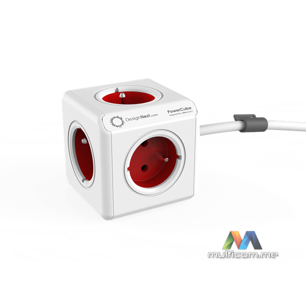 Allocacoc PowerCube Extended 1,5 m - red │ 5 utičnica │ Montažni sistem │ Modularni dizajn │ Uklonjive trake │ Organizator kablova