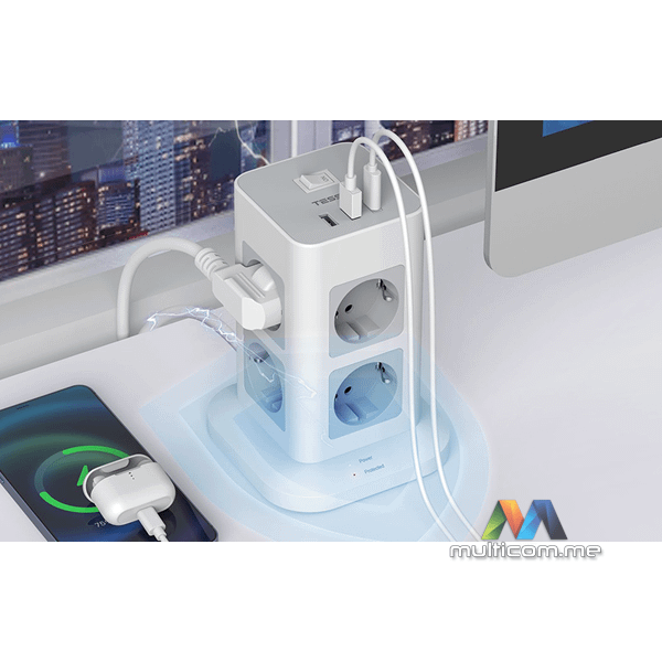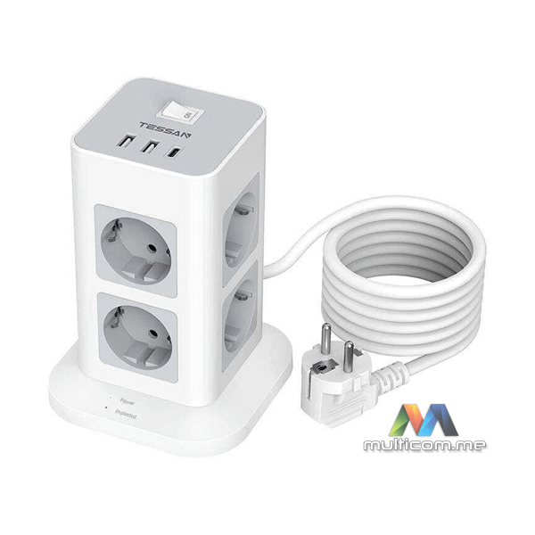 TESSAN produžni kabl ti pomaže da organizuješ svoj radni prostor kako treba. Sa 8 dostupnih AC utičnica i 3 USB porta (2x USB-A, 1x USB-C), omogućava ti da napajaš do 11 uređaja odjednom. Bez problema možeš povezati svoj laptop, pametni telefon, tablet, monitor, stonu lampu ili zvučnike – mogućnosti su gotovo neograničene!