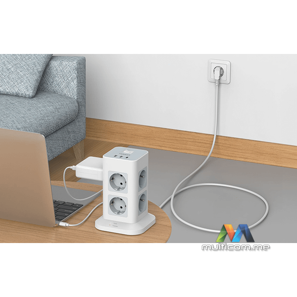 Napajajte do 11 uređaja istovremeno: 8 AC utičnica + 2 USB-A + 1 USB-C port za maksimalnu praktičnost u kući ili kancelariji