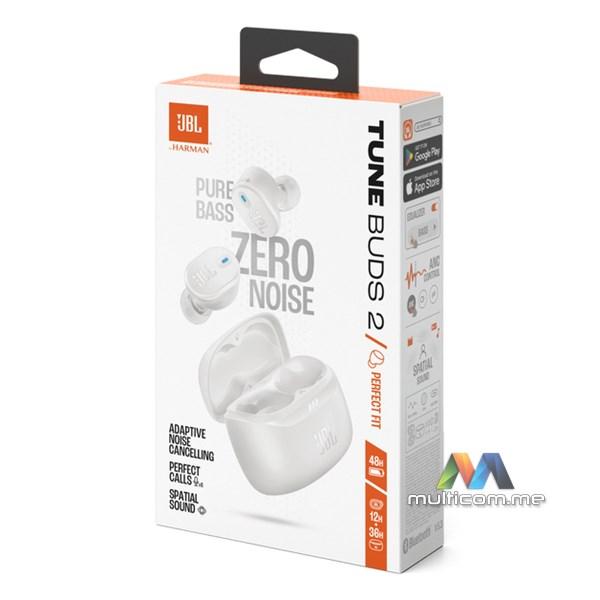 JBL Tune Buds 2 bežične slušalice │ JBL Pure Bass │ Adaptivno poništavanje buke sa Smart Ambient │ 6 mikrofona za savršene pozive │ Personi-Fi 3.0 za personalizovani zvuk │ Do 48 sati reprodukcije │ IP54 otpornost na prašinu i vodu