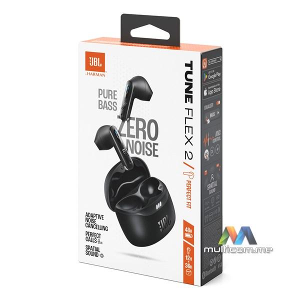 JBL Tune Flex 2 bežične slušalice │ JBL Pure Bass zvuk │ Adaptivno poništavanje buke │ 6 mikrofona za pozive │ Do 48 sati reprodukcije │ IP54 otpornost na prašinu i vodu