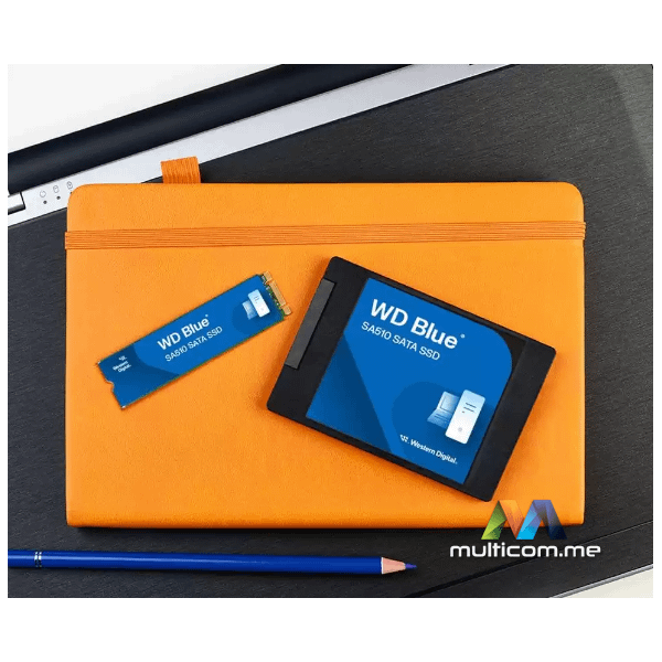 Poboljšajte svoju kreativnost sa WD Blue® SA510 SATA SSD-om kako biste pomjerili granice svog rada. Dizajniran sa profesionalcem ili kreatorom na umu, WD Blue® SA510 SATA SSD isporučuje do 560MB/s2 (modeli od 500GB – 4TB1 ), za vaš radni tok, i do 4TB1 kapaciteta za čuvanje vaših velikih medijskih fajlova. Maksimalna kompatibilnost sa starijim računarima sa 2.5”/7mm ili M.2 22803 formatima. SSD sa Western Digital® 3D NAND-om za pouzdano čuvanje vaših podataka, posebno za povremene udarce i padove.
