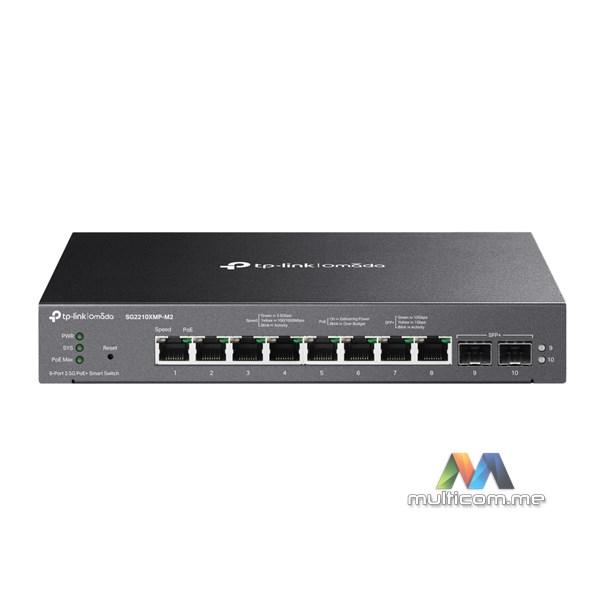 TP-Link SG2210XMP-M2 Omada pametni switch │ 8× 2.5Gbps PoE+ portova │ 2× 10G SFP+ slotova │ 160W PoE budžet (do 30W po portu) │ Cloud & lokalno upravljanje │ Static Routing │ Bešuman rad │ Desktop/zidna montaža