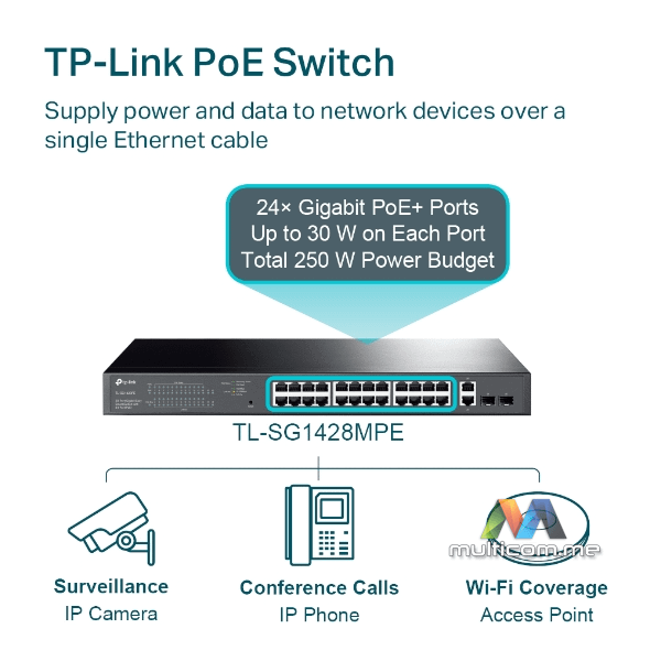 TP-LINK TL-SG1428PE 28-port Easy Smart upravljiv svič sa 24-port PoE+ │ 24 PoE+ portova │ PoE budžet do 250 W