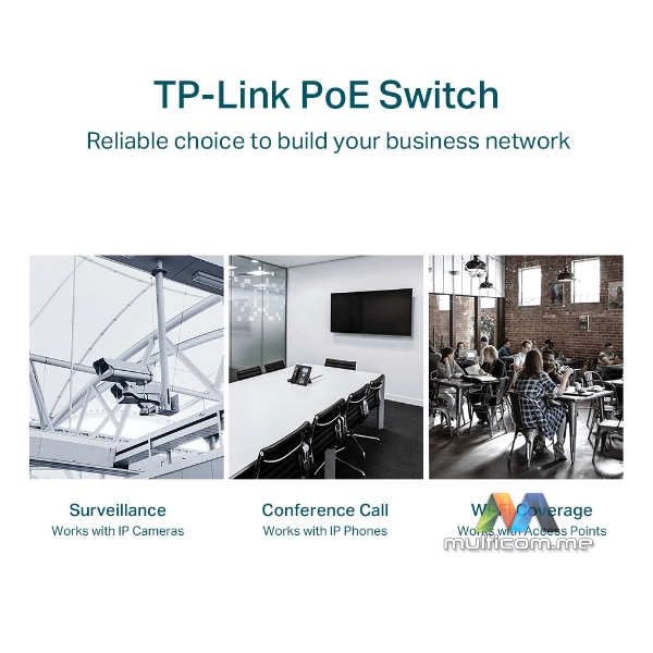 PoE budžet snage je do 250 W*, što ga čini idealnim za nadzorne sisteme malih i srednjih preduzeća