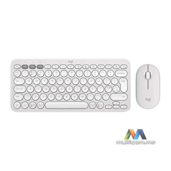 Logitech Pebble 2 Combo Tonal White US International (Qwerty) tastatura i miš komplet │ Bluetooth Low Energy │ Uparivanje sa do 3 uređaja │ Tihi klikovi sa Silent Touch tehnologijom │ DPI: 400-4000 dpi