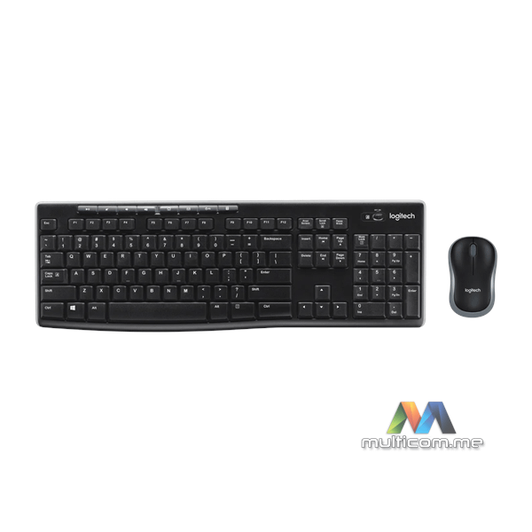 Logitech MK270 bežični komplet tastatura + miš │ Tastatura: Bežična (USB), EN (US), 8 multimedijalnih tastera, domet 10m, 2x AAA baterije │ Miš: Logitech M185, bežični (USB Unifying), optički senzor, domet 10m, 2x AA baterije