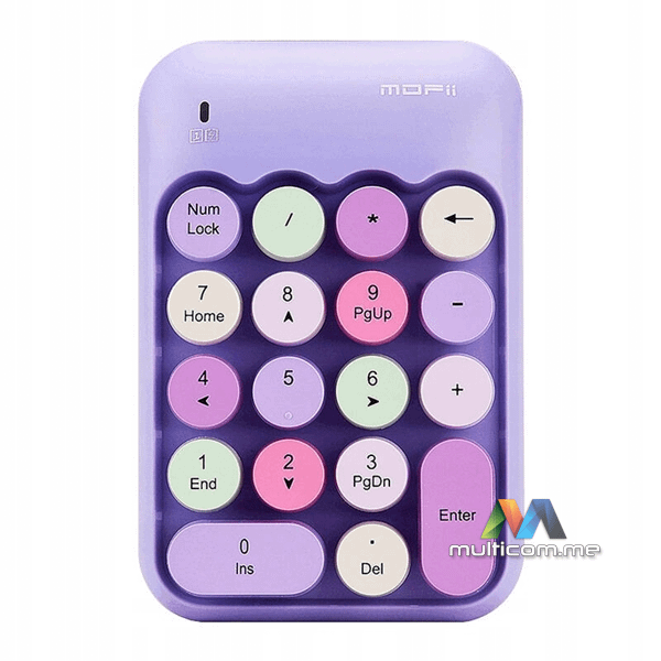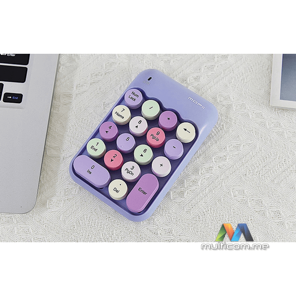 MOFII X910 bežični NUMPAD │ Tip baterije: AAA │ Potrošnja energije: <6.5 mA (rad), 0.06 mA (mirovanje) │ Interfejs: USB 1.1, USB 2.0 │ RF frekvencija: 2.4 GHz │ Broj RF kanala: 34 │ Doseg: 6-10 m │ Kompatibilnost: Windows 2000/XP/ME/Vista/7/8/10 │ Dimenzije: 90 x 134.80 x 28.50 mm │ Težina: 105 ± 5 g