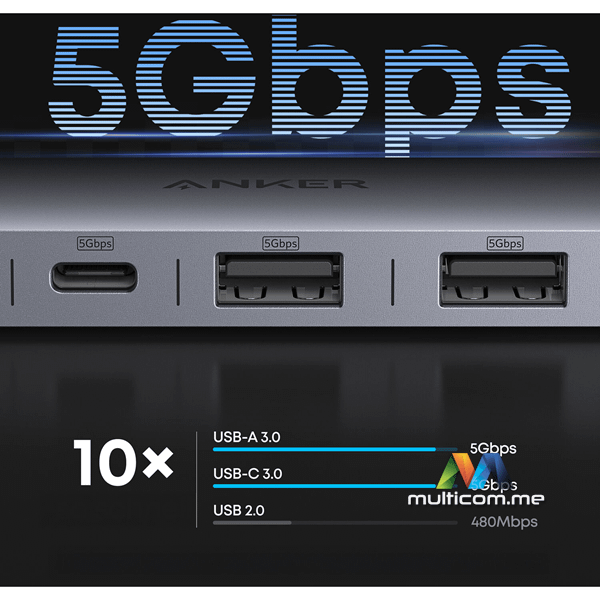 Iskusite sveobuhvatnu povezanost za vaš Windows, Mac, ili Chrome sistem sa Nano 7-u-1 USB-C Hub-om od Anker-a, koji korisnicima pruža jedan USB-C 3.2 Gen 1 port, dva USB-A 3.2 Gen 1 porta, jedan HDMI port koji podržava rezolucije do 4K pri 60 Hz u oba režima - ogledalo i proširenje, jedan UHS-I SDXC čitač kartica i jedan UHS-I microSDXC čitač kartica. Takođe je prisutan USB-C Power Delivery port koji podržava do 100W prolaznog punjenja, sa 15W koji se koristi za napajanje huba, a preostalih 85W dostupno za vaš glavni uređaj. Povezivanje sa vašim desktop ili laptop računarom se ostvaruje korišćenjem integrisanog 9.84" USB-C kabla.