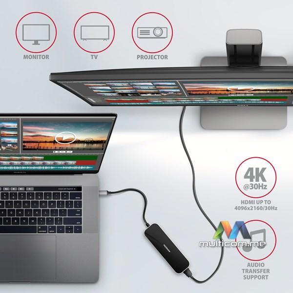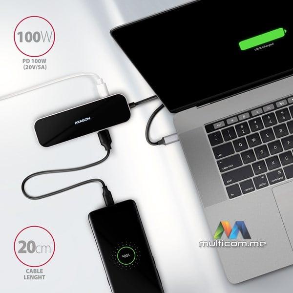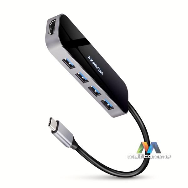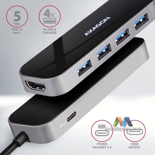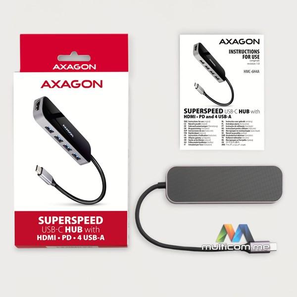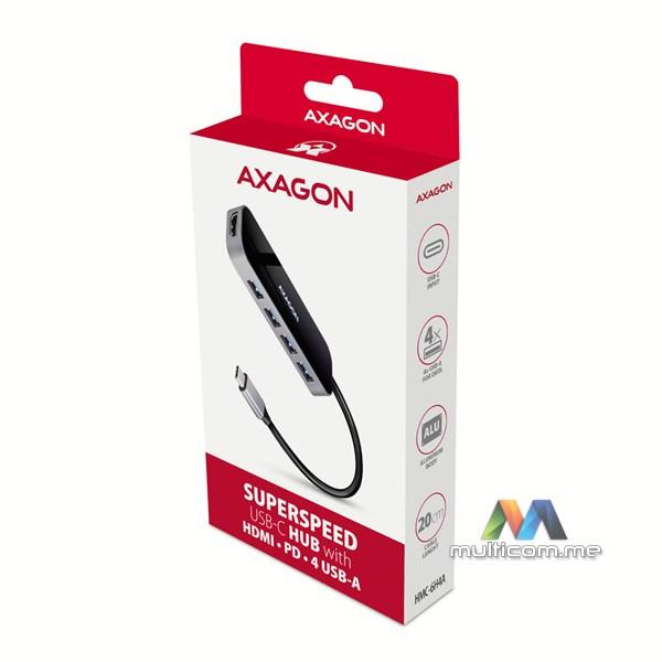 Axagon HMC-6H4A USB hub │ USB-C 3.2 Gen 1 interfejs │ Izlazi: 4x USB-A / PD 3.0 100W / HDMI 4K / 30Hz │ Dužina kabla 20cm
