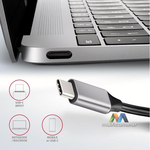 Multiport USB-C 3.2 Gen 1 hub AXAGON HMC-6H4A proširuje vaš laptop, računar ili telefon sa šest portova. Možete jednostavno i brzo povezati do četiri USB uređaja i HDMI displej na vaš računar istovremeno putem dvosmjernog USB-C konektora. Takođe dobijate mogućnost napajanja laptopa koristeći Power Delivery tehnologiju. USB-C hub će vam pružiti jednostavnu i kompaktno 6u1 docking stanicu za laptop kao što je MacBook Pro.