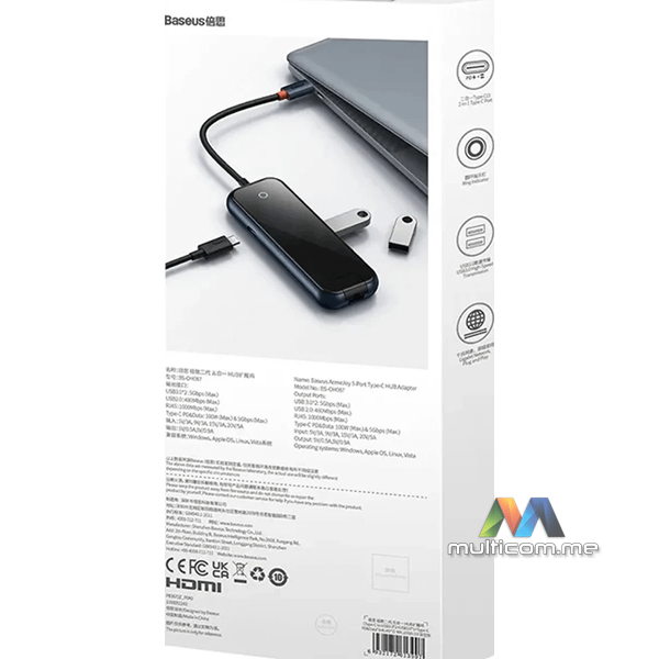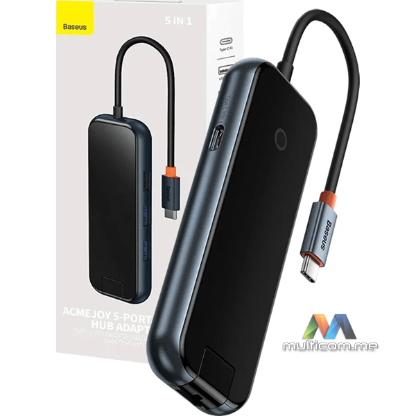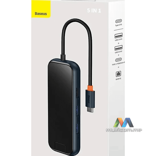 Baseus AcmeJoy 5-u-1 HUB │ USB-C na 2xUSB 3.0 + USB 2.0 + USB-C PD + RJ45 │ Brzina prijenosa do 500 MB/s │ Podrška za brzo punjenje PD 100 W │ Plug&Play tehnologija