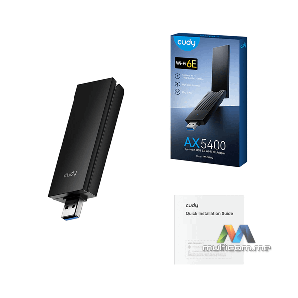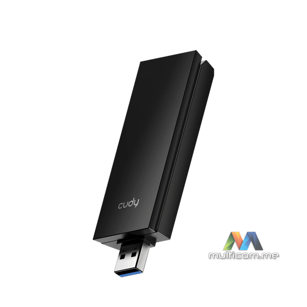 CUDY WU5400 AX5400 Tri-Band Wi-Fi 6/6E USB adapter │ Tri-Band Wi-Fi 6E tehnologija │ Brzine do 2.4 Gbps + 2.4 Gbps + 574 Mbps │ USB 3.0 │ Kompatibilnost sa Windows 10/11 │ Plug & Play