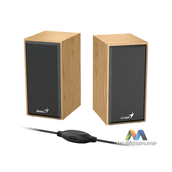 GENIUS SP-HF180 zvučnici za računar │ Drveno kućište │ 2 x 3W (6W) snaga │ 3.5mm audio priključak │ Lako dostupne kontrole za jačinu zvuka │ USB napajanje