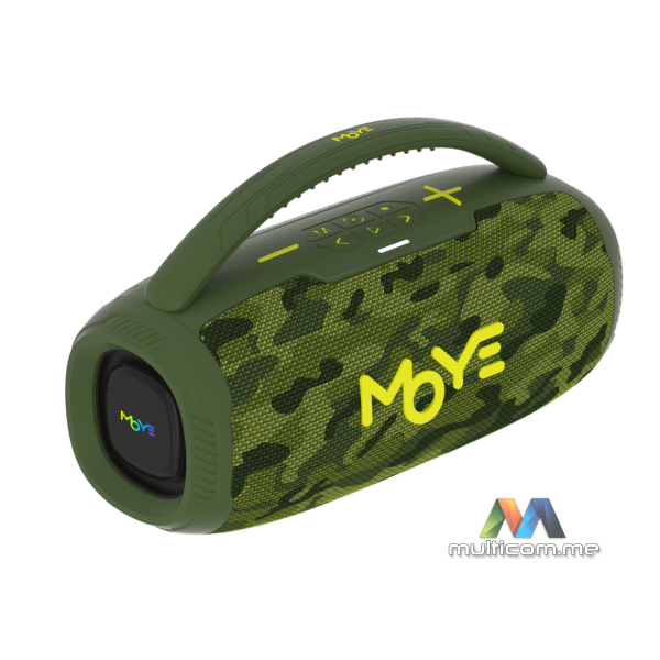 Moye Beat Go Green Bluetooth zvučnik │ Bluetooth 5.3 │ IPX6 vodootporan │ Trajanje baterije: 6-8 h │ Višebojno osvjetljenje │ Snaga: 20 W