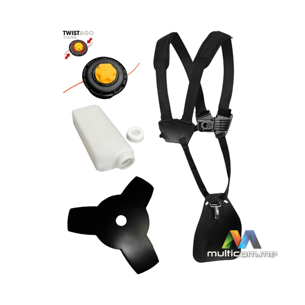 | Pakovanje | Metalno sečivo sa 3 zupca, Poluautomatski rezač najlona, Podesivi kaiš, Bicikl ručka |
