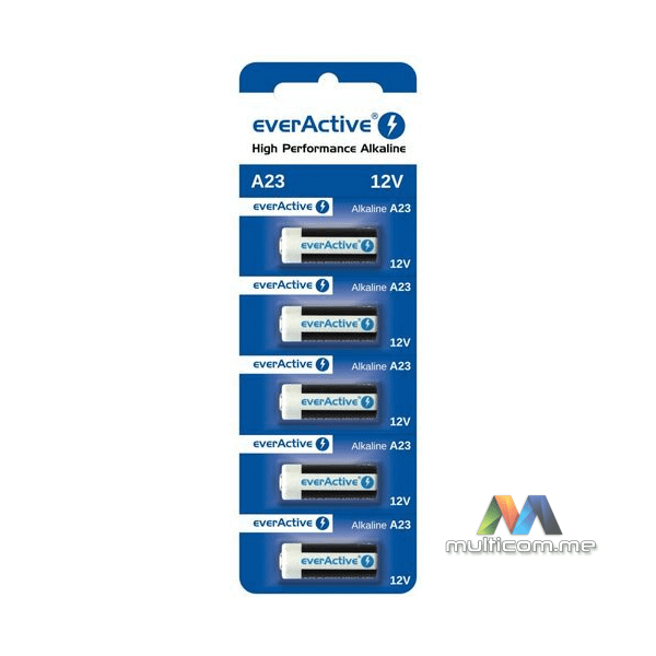 everActive A23 12V blister (5 kom) baterije │ Tip: Jednokratna baterija │ Tehnologija: Alkalna │ Broj baterija: 5 kom │ Napon: 12 V