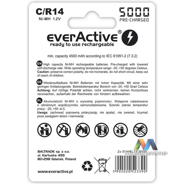 everActive Ni-MH R14 C 5000 mAh Professional Line punjive baterije