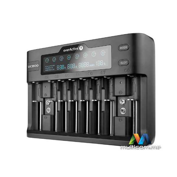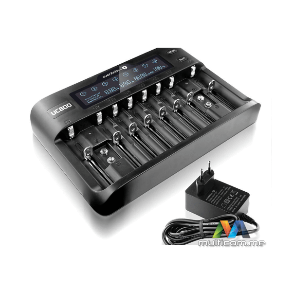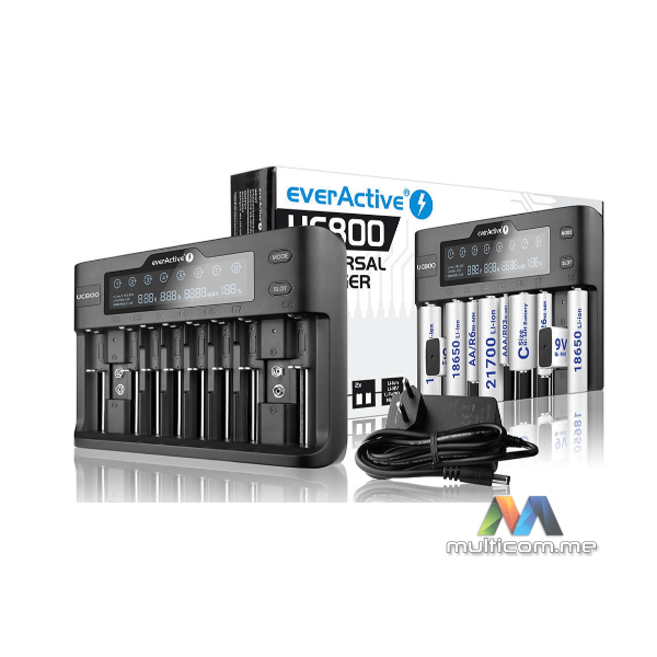 everActive UC800 punjač za baterije │ Podržava 10 baterija │ Kompatibilne veličine: 9v, AA, AAA │ Ugrađeni displej │ Ulazni napon 12 V