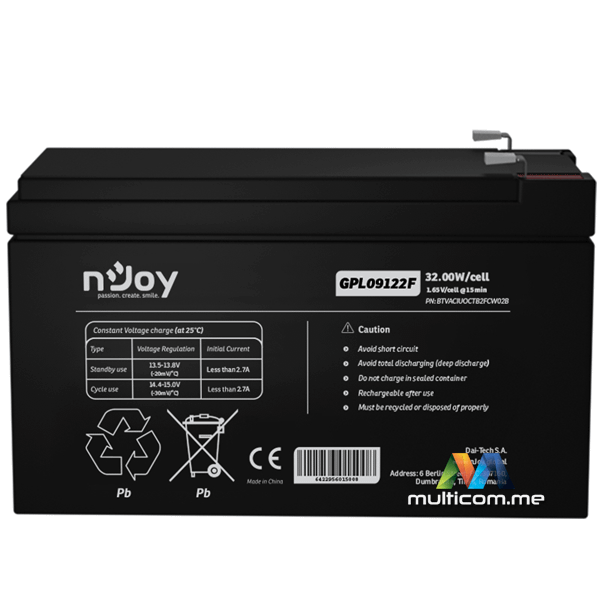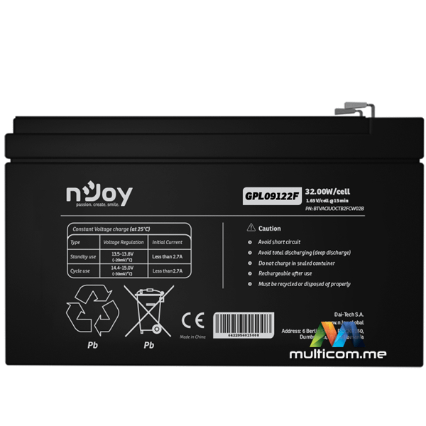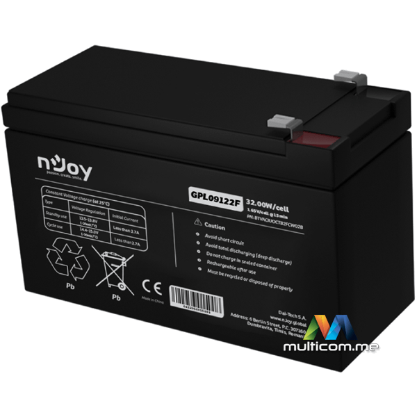 NJOY GPL09122F baterija za UPS 12V 9Ah (BTVACIUOCTB2FCW02B) │ VRLA AGM tip baterije │ Snaga 32W │ Voltaža 12V │ 6 ćelija